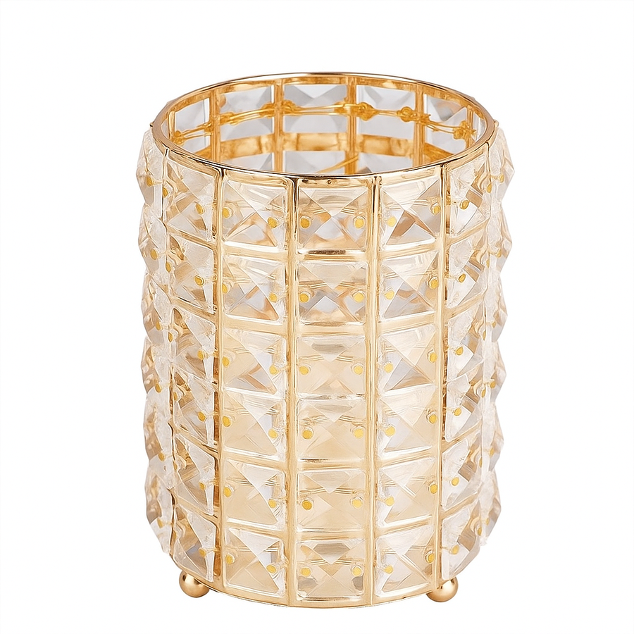 دلوقتي تقدرِ تنظّمي كل أدواتك بشكل أنيق ومرتب مع منظم المكياج الذهبي بتصميم فاخر ولمسة كريستال جذابة.