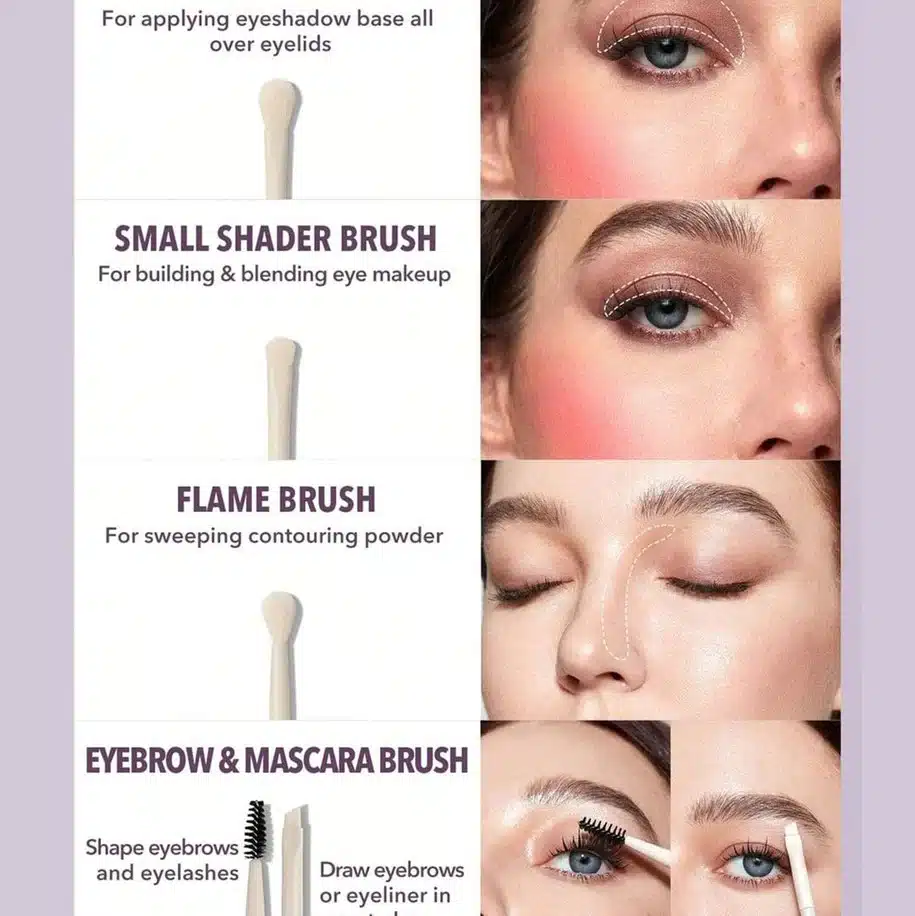 فرشاة الايشادو: تتميز برأس فرشاة بيضاوية مسطحة، مثالية لتطبيق قواعد ظلال العيون على جميع أنحاء جفونك بسهولة وتحكم.